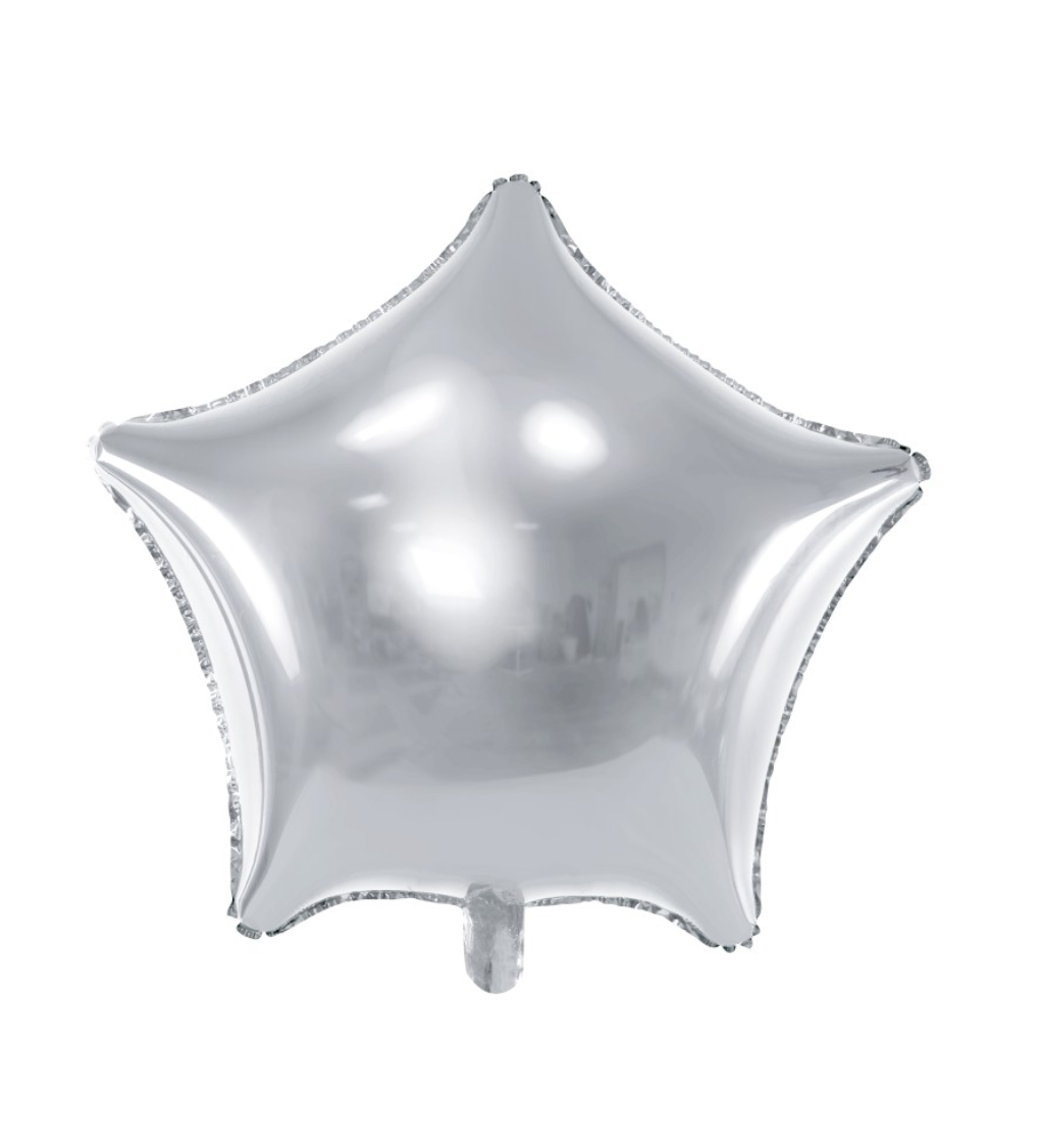 Balónik Strieborná hviezda, vhodný na oslavy.